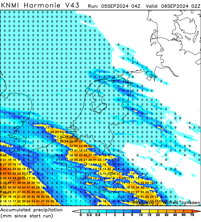 Harmonie 04Z geeft de buien noordelijker dan andere modellen
