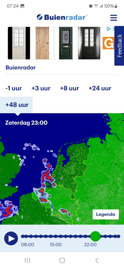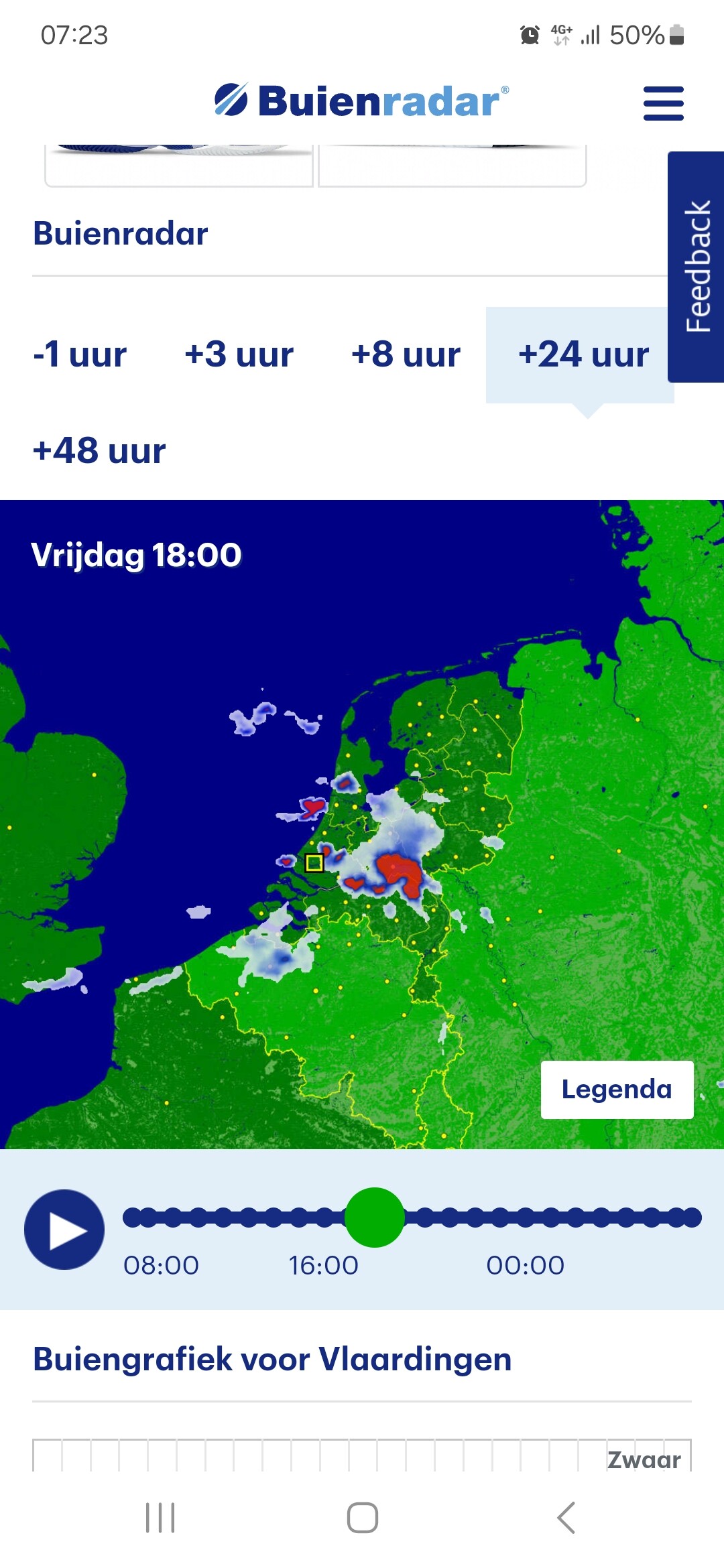 Op passage van de hoogtetrog in de ochtend zee lokaal een bui vanaf middelbaar niveau. Tussen front en de vore af en toe regen, soms buiig. Nog enige onzekerheid in de timing van de neerslag (zie modelbeoordeling). In de loop van de middag neemt op nadering en passage van de hoogtetrog de kans op enkele buien toe. CAPE 500-1000 J/kg, schering maximaal 10 knopen, single cel. Kans op onweer neemt dan ook toe, vooral EC laat dat zien. Zaterdag in de loop van de avond toenemende kans op enkele stevige buien, mogelijk met onweer. CAPE is ca.1000 J/g, effectieve schering 20-30 knopen, waarschijnlijk enkele multicellen, mogelijk opgelijnd langs het front.
