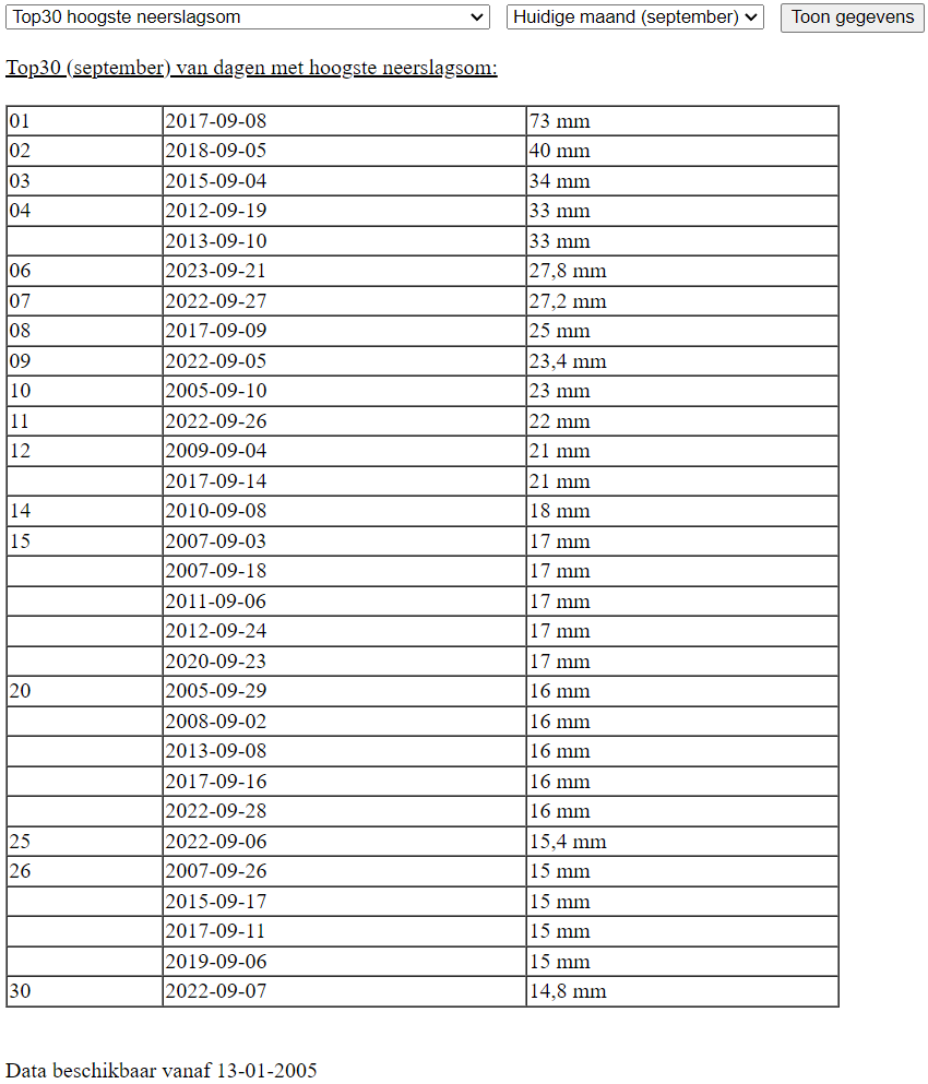 Droog | 38% (30,4 mm) maandsom binnen | 6e plek dagsom in september