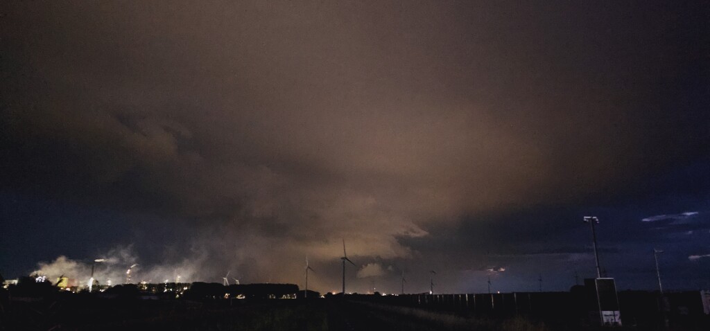 Ik zit op dit moment oost van Terneuzen, weerlicht als een yekko, wallcloud in het bliksemlicht zichtbaar, heel veel cc en ic werk en een sporadische cg