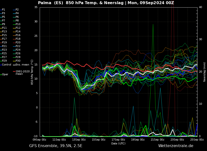 Maar goed voor de periode 15-25 september kan er nog veel veranderen. Maar tot nu toe koelt het ensemble van Mallorca per run verder af. Als het zo doorgaat redden we de 25 graden daar niet of nauwelijks meer. Maar dan wordt het gewoon lekker wandelen met de kleine ipv zwemmen