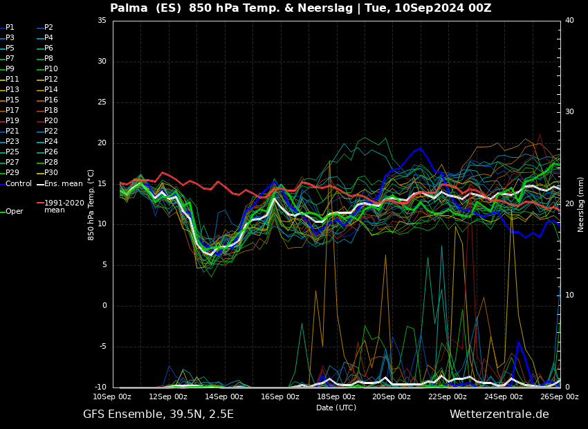 Voor tussen 15 en 25 september?.Geen ervaring met het weer daar. Maar ik schat in iets onder normaal en af en toe een bui? 24 graden ofzo?