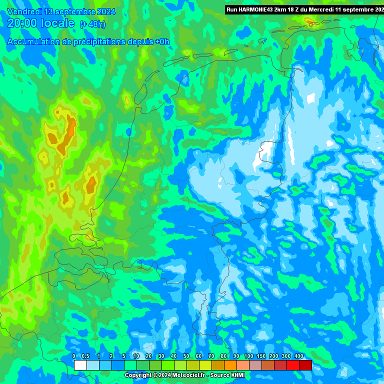 Fijnmazige modellen komen met lokaal 60-80 mm neerslag in de komende 36 uur. Hieronder de laatste uitvoer van Harmonie: