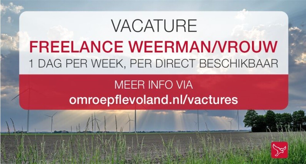 Voor meer informatie over de vacature kun je contact opnemen met Robert de Vries (weerman Omroep Flevoland), e-mail: robert.de.vries@omroepflevoland.nl of 0320-285085.