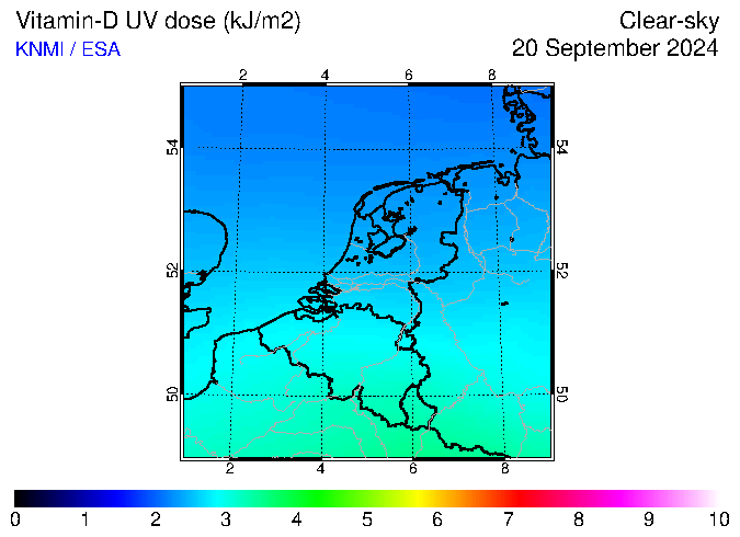 Onderstaande site heeft handige kaartjes afhankelijk van waar je in geïnteresseerd bent, zoals blootstelling vd huid, Vitamine-D of DNA-schade.