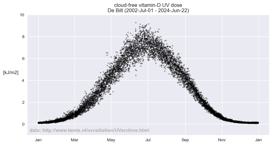 Dit is de gemodelleerde wolkenvrije data van TEMIS voor De Bilt, met een lineaire schaal: