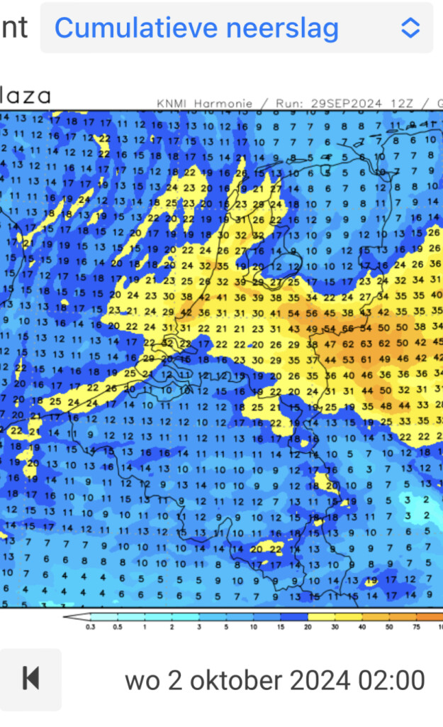 Veel regen midden-Nederland volgende 48hr volgens harmonie