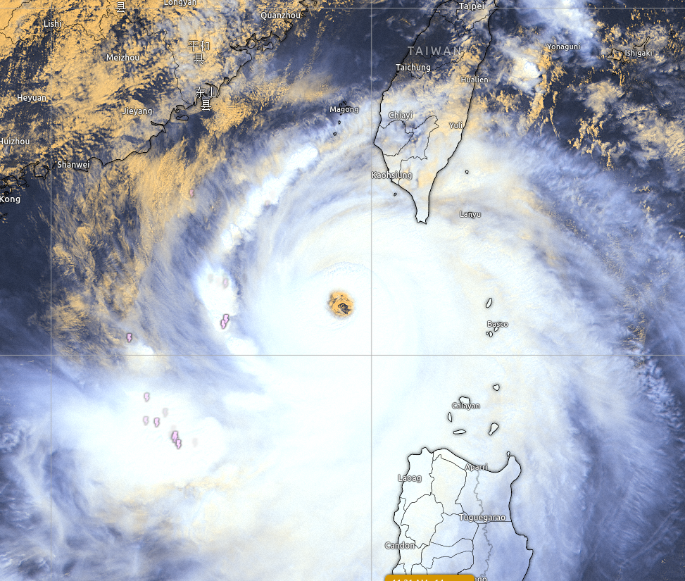 Kortom, de trekrichting is noordoost of west, of nergens heen. De intensiteit is supertyfoon of dissipatie, of landfall op Taiwan bij miljoenenstad Kaohsiung of Tainan. De forecasters hebben er een zware dag aan, wat duidelijk aan hun woordkeuze is af te leiden. De vorige discussion had het over een 'unprecedented extreme bifurcation'.