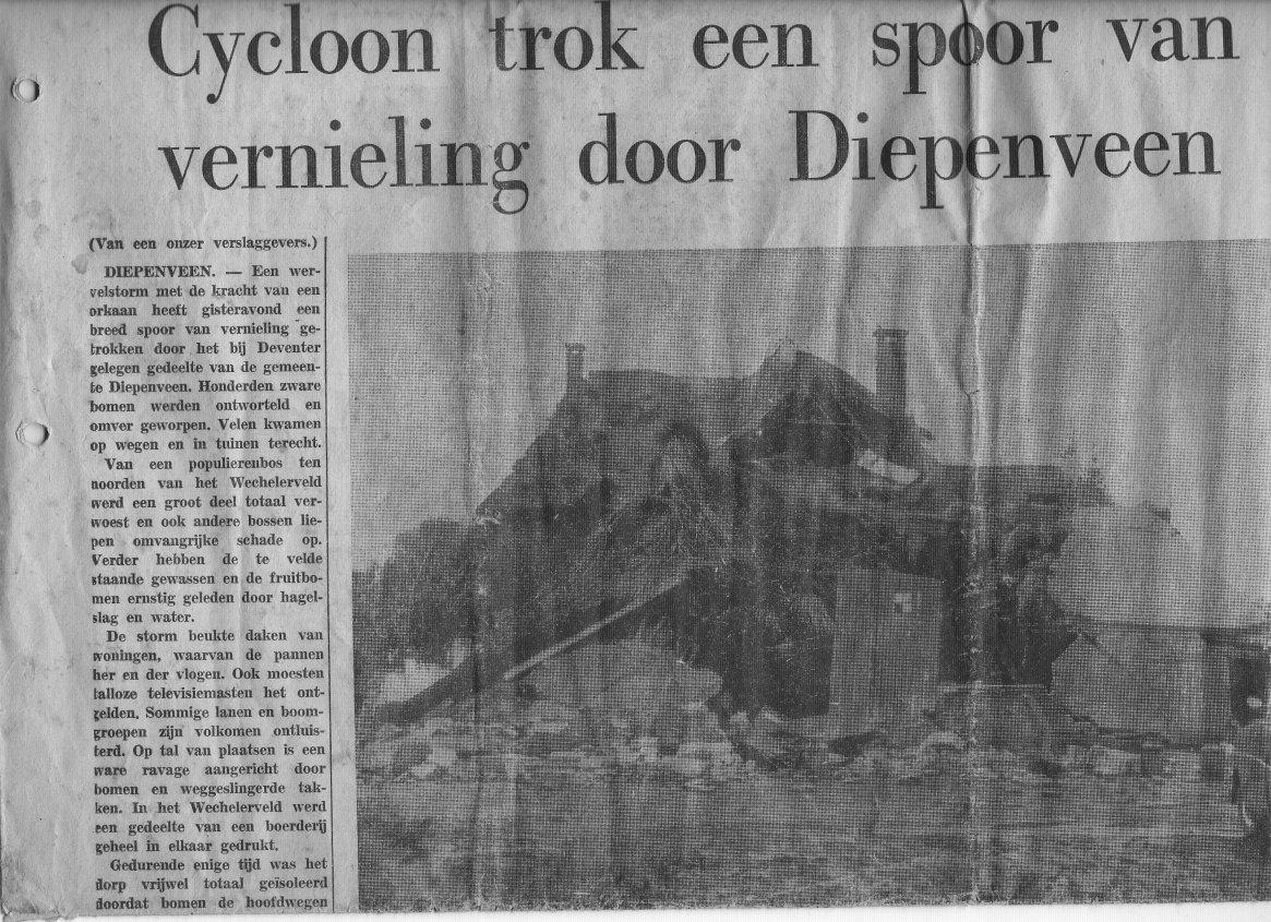 Een tijdje geleden kwam ik geheel toevallig een oude krant tegen met daarin een verslag over een 'cycloon' die Diepenveen trof (mijn ouders hadden deze bewaard). Zie de volgende link: http://www.weerwoord.be/includes/forum_read.php?id=44873&tid=44873