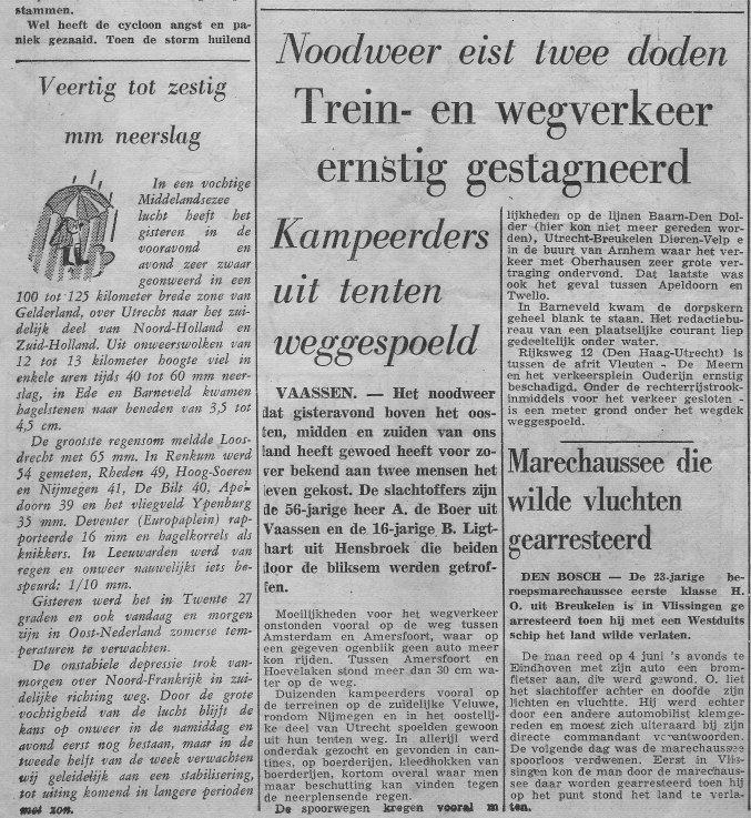Hieronder volgen enkele scans en de weerkaarten (reanalysis) van die dag. Toch apart die oostelijke bovenstroming (in de krant staat ook vermeld dat het noodweer van Diepenveen richting het W getrokken is, naar de Veluwe), komt denk ik niet vaak voor. Of is dit nu een voorbeeld van het het 'beruchte' Ostgewitter?