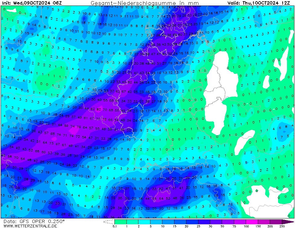GFS06 komt met weer een wat westelijker georiƫnteerd neerslaggebied