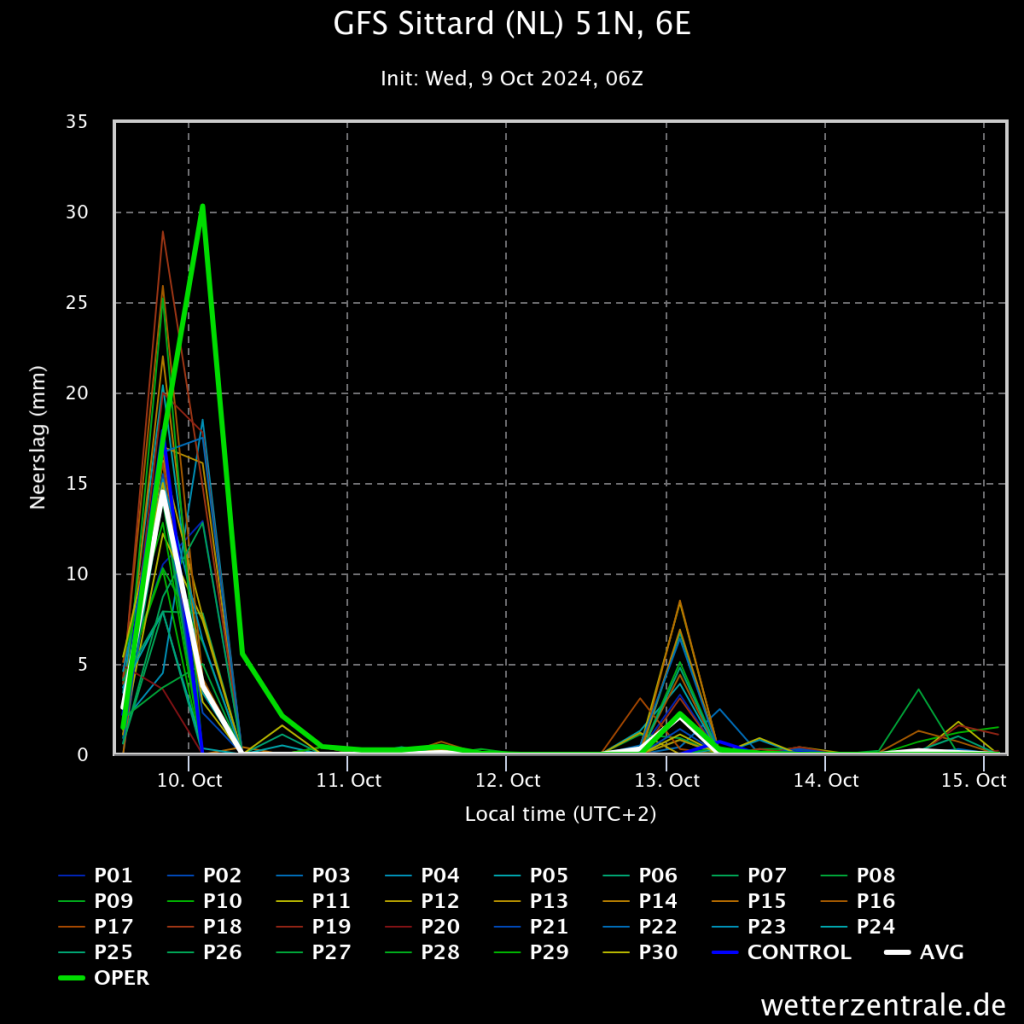 Niettemin is de neerslag piek flink opgehoogd. Voor mijn regio serieus veel regen volgend GFS. Zie ensemble Arcen