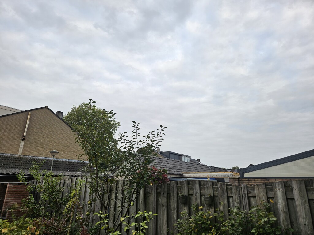 Hier is de grijze deken toch hardnekkig. Nu half tot zwaar bewolkt.