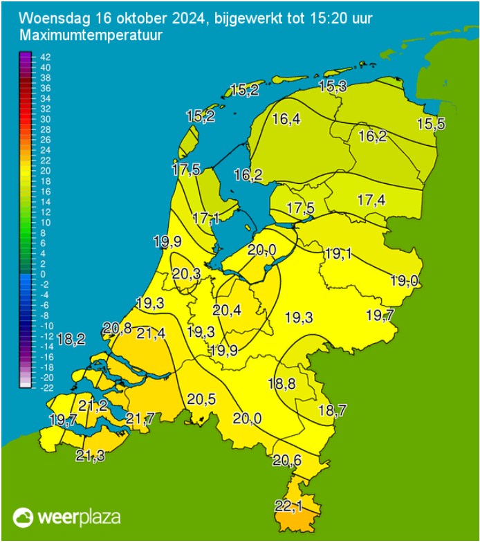 Vooral in het zuidwesten is het nog wat verder opgewarmd. In het noorden amper warm te noemen, eerder normaal