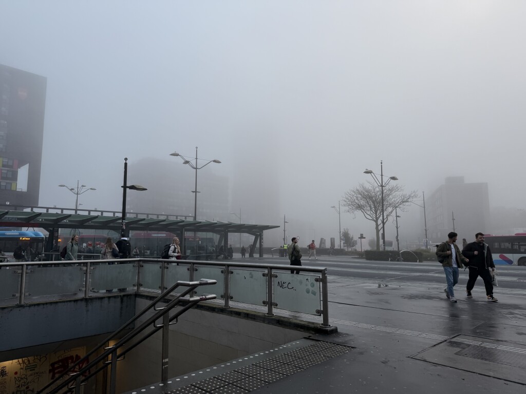 Ja geweldig sfeertje hè buiten, heel mystiek, op en top herfst