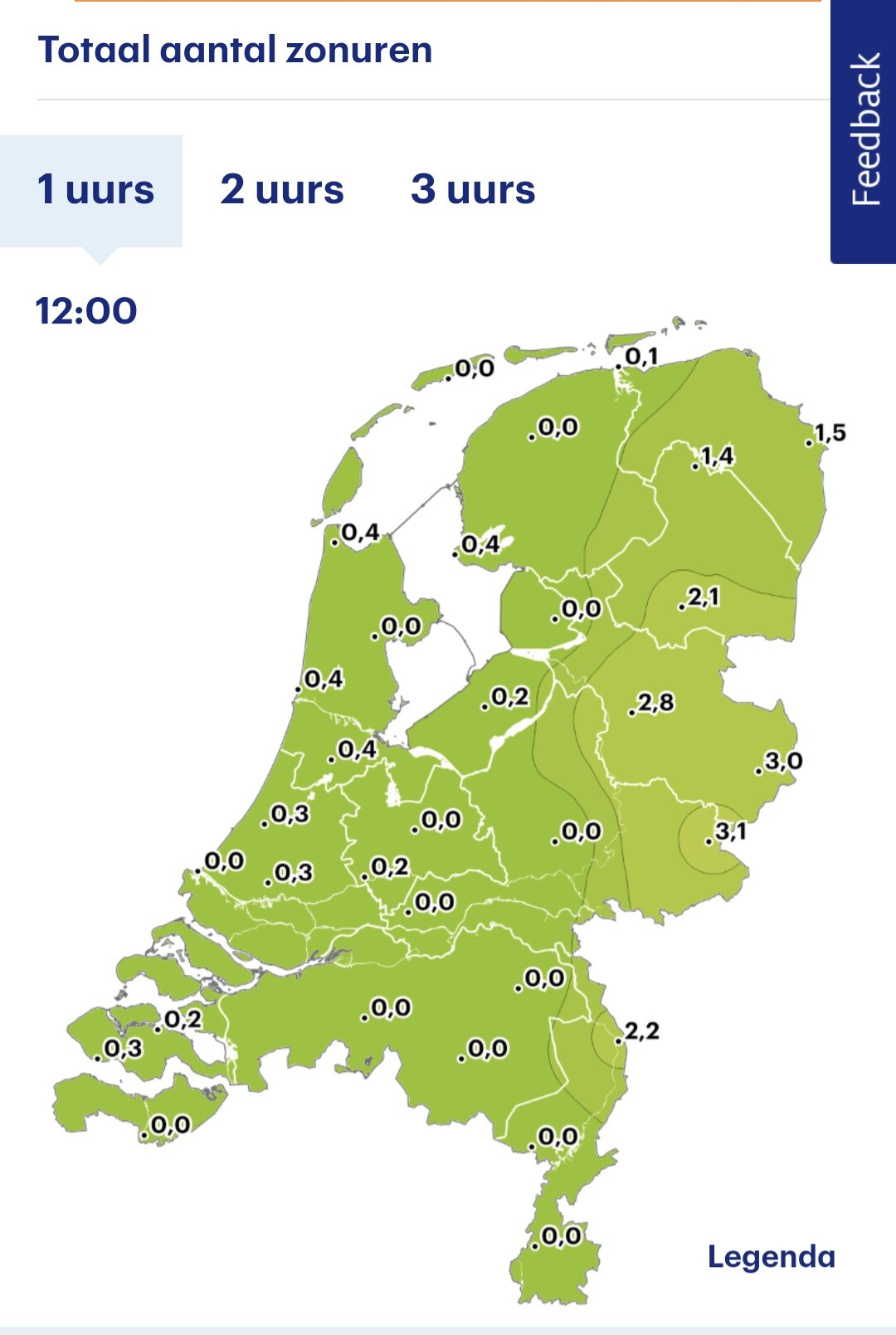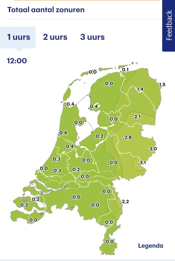Vanochtend in Wageningen bewolkt, maar nu in Rotterdam ook zon.