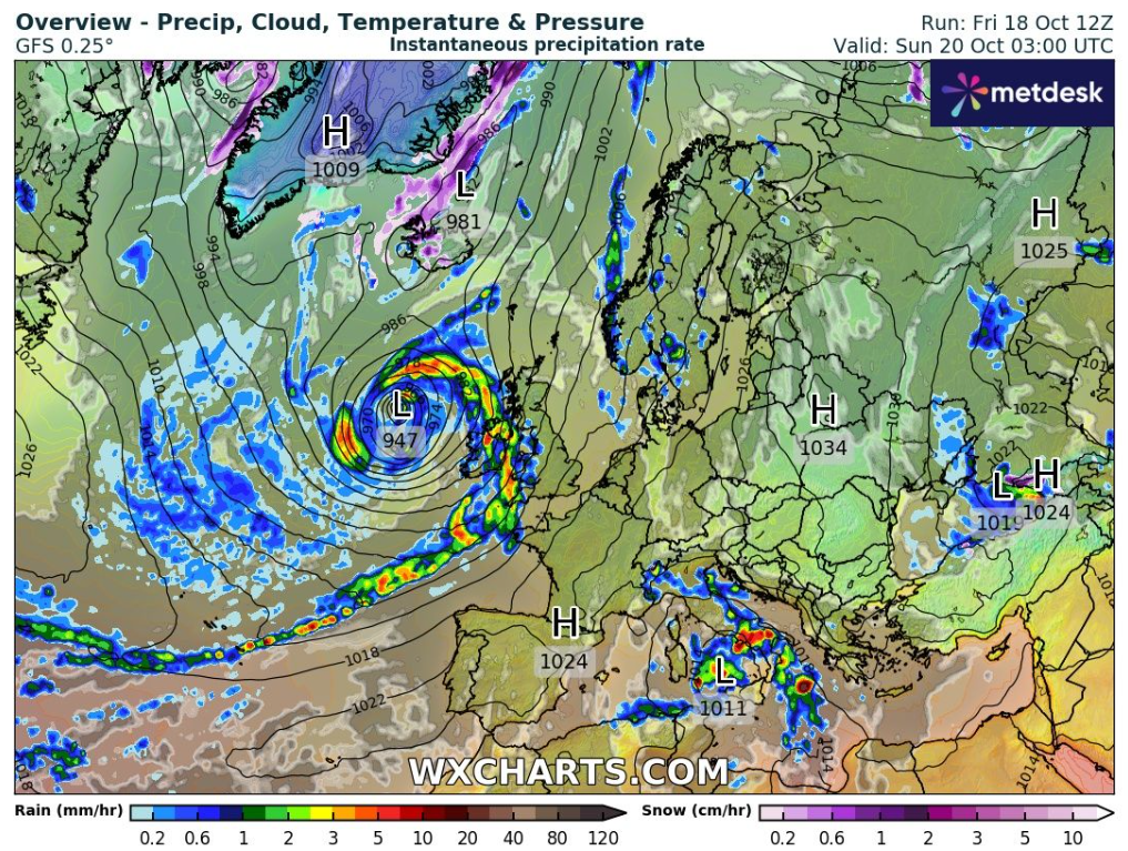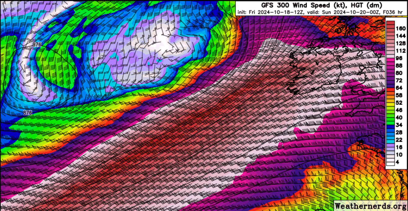 De straalstroom die op het Verenigd Koninkrijk gericht ligt tijdens het ontwikkelingsproces van Ashley heeft waarschijnlijk windsnelheden van 160 kt (geconverteerd naar km/u is het 300 km/u). Een optimale interactie tussen de straalstroom en het lagedrukgebied zorgt ervoor dat er een RaCy-proces plaatsvindt. Het luchtdrukverloop tijdens dit RaCy-proces is 1.002 » 953 hPa binnen 24 uur. volgens GFS. Dat is een daling van 49 hPa/24u. Daarna daalt de luchtdruk binnen het lagedrukgebied naar 947 hPa volgens GFS. De laatste keer dat we een sub-950 hPa extratropische cycloon hadden in een Europees stormseizoen was in 2020.