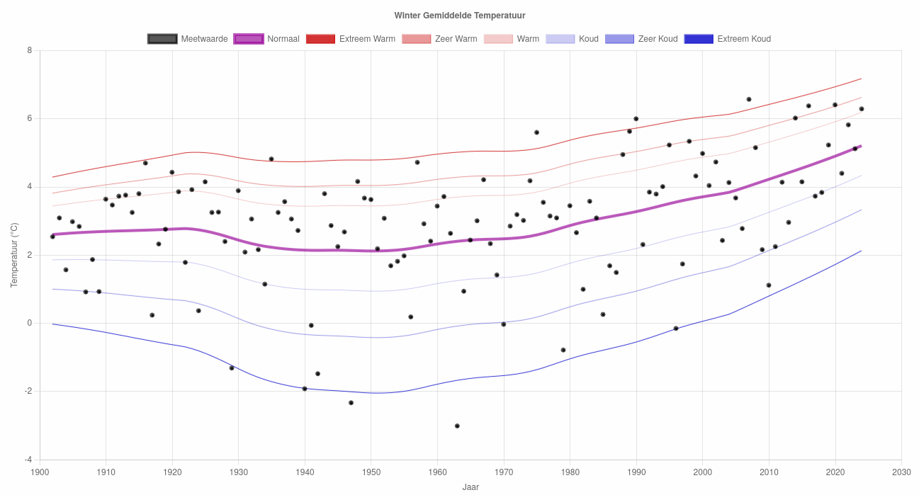 Een winter zoals 1996 zou vandaag de dag écht ongekend zijn, nog extremer dan 1963 ten opzichte van de decennia daar omheen.