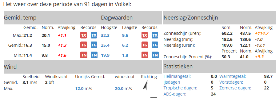 De afgelopen 3 maanden slechts 2 keer zonniger. Vrij droog en warm.