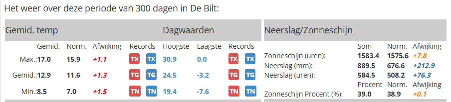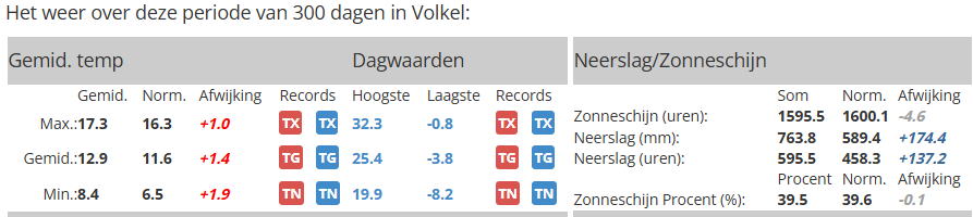 De afgelopen 3 maanden slechts 2 keer zonniger. Vrij droog en warm.