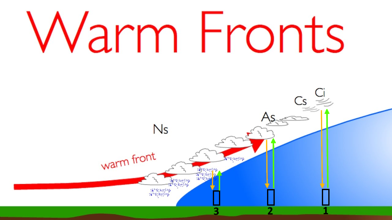 1) Als eerste wordt cirrus/cirrostratus gedetecteerd. Die liep vannacht al binnen.