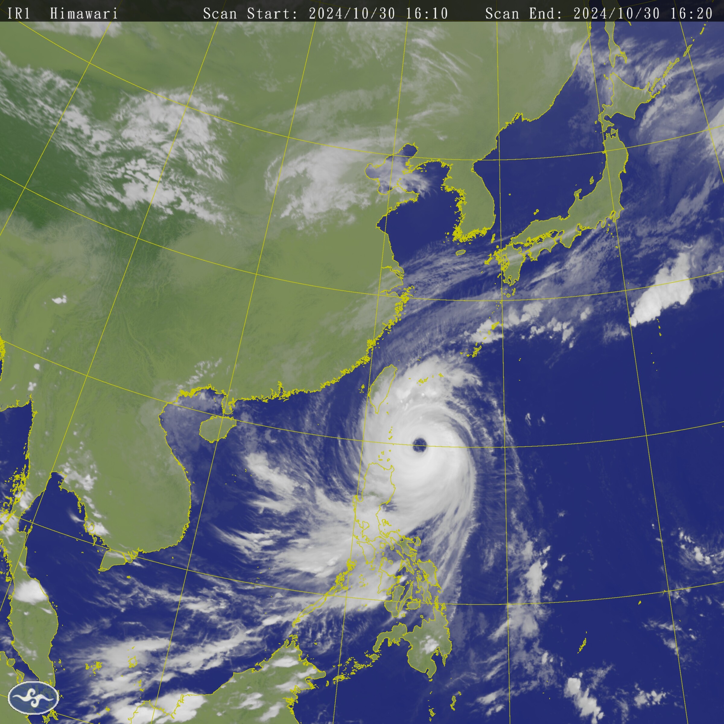 het oog lijkt nu weer wat helderder, er was sprake van meerdere meso-vortices. De eerste regenbanden hebben Taiwan al bereikt, prakties alle energie is op de Oostkust gericht. Ben benieuwd hoeveel er na landfall nog over blijft van het hele systeem.