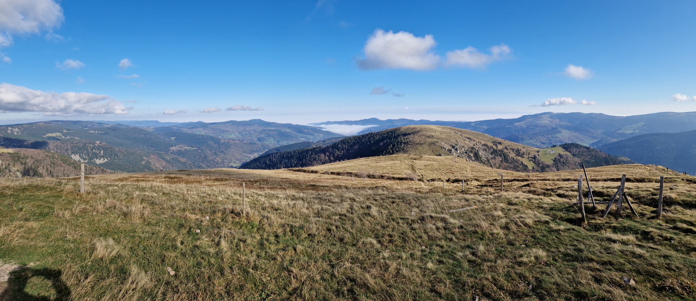 Mooi te zien vanaf hier is de inversie onder het warmbloedige hoog. De Rijnvlakte/Elzas liggen geheel in de mist en het Zwarte Woud steekt daarachter (net als de Vogezen) boven de mist uit. Mooi gezicht.