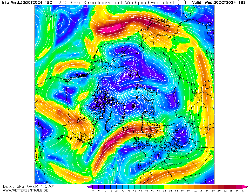 Momenteel is de straalstroom mooi zichtbaar aan de rivier van wolken op het satellietbeeld van Eumetsat. Met een band aan wolken, vanaf de Grote Antillen meanderend naar Nova Zembla. Waarbij er een dubbele of subtropische en polaire straalstroom lijken samen te smelten elkaar. Ongeveer boven de centrale Atlantische Oceaan op het noordelijk halfrond. Daarbij komt er ook een grote warme luchtmassa naar het noorden, om de Europese blokkade heen het continent op.