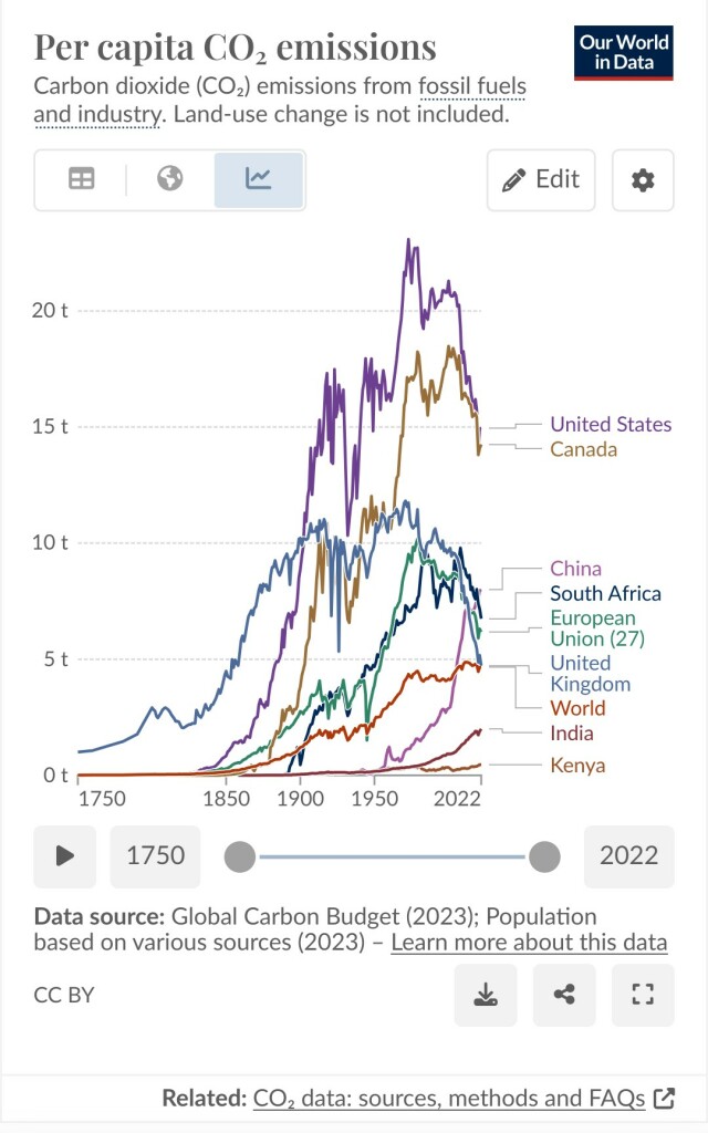Dat het allemaal een momentopname is. De CO2 uitstoot wereldwijd stijgt razendsnel, terwijl de EU stabiliseert. Uiteraard zitten wij dan nog per capita boven enkele minder ontwikkelde gebieden zoals bv. India. Maar daarom schrijf ik ook ecologie bij, India is één van de meest vervuilende landen ter wereld, plastics, zware metalen, het ligt gewoon op straat of massaal de rivieren in. Uiteindelijk zullen zij ook méér uitstoten en daar bitterweinig om geven.