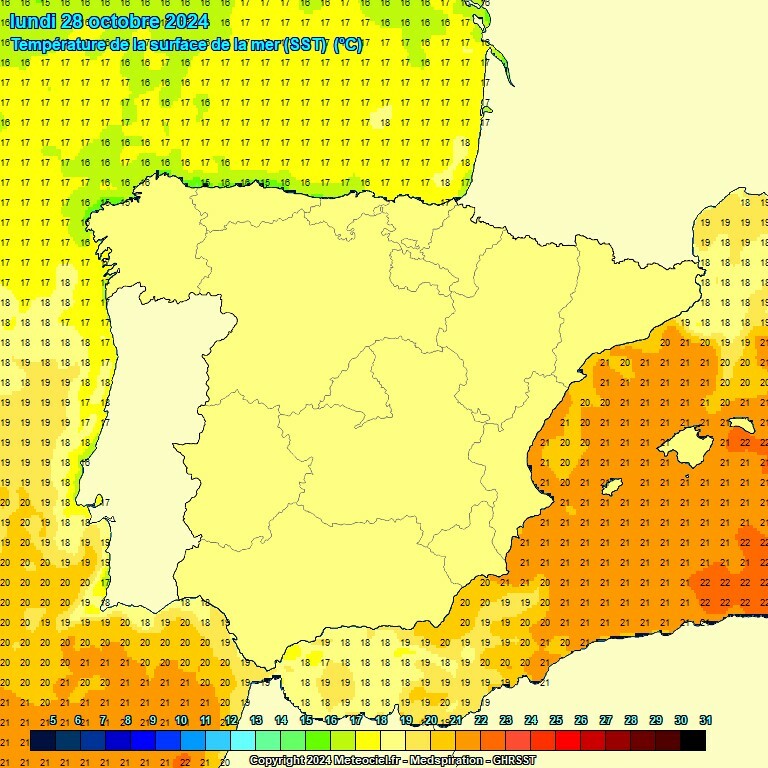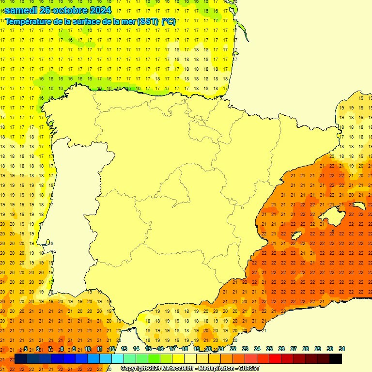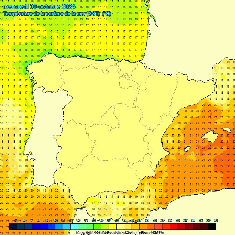 Hieronder de zeewatertemperatuur op een drietal dagen vorige week. Nergens is die 24°C te vinden.
