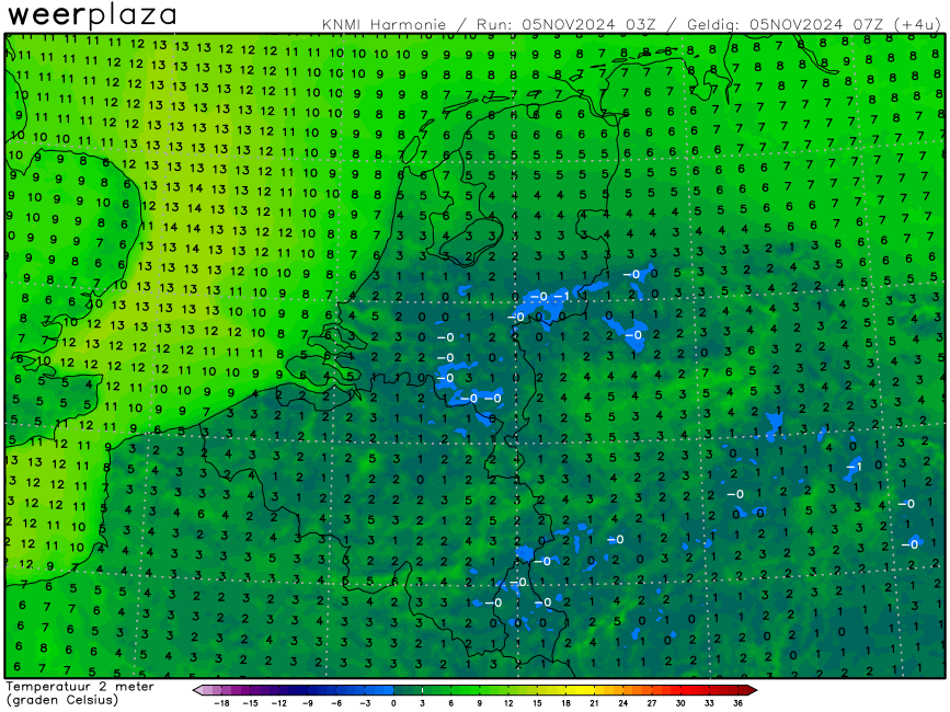 Vandaag icond2 en Arome opnieuw grijs en koud. Harmonie helder, zon en zacht.