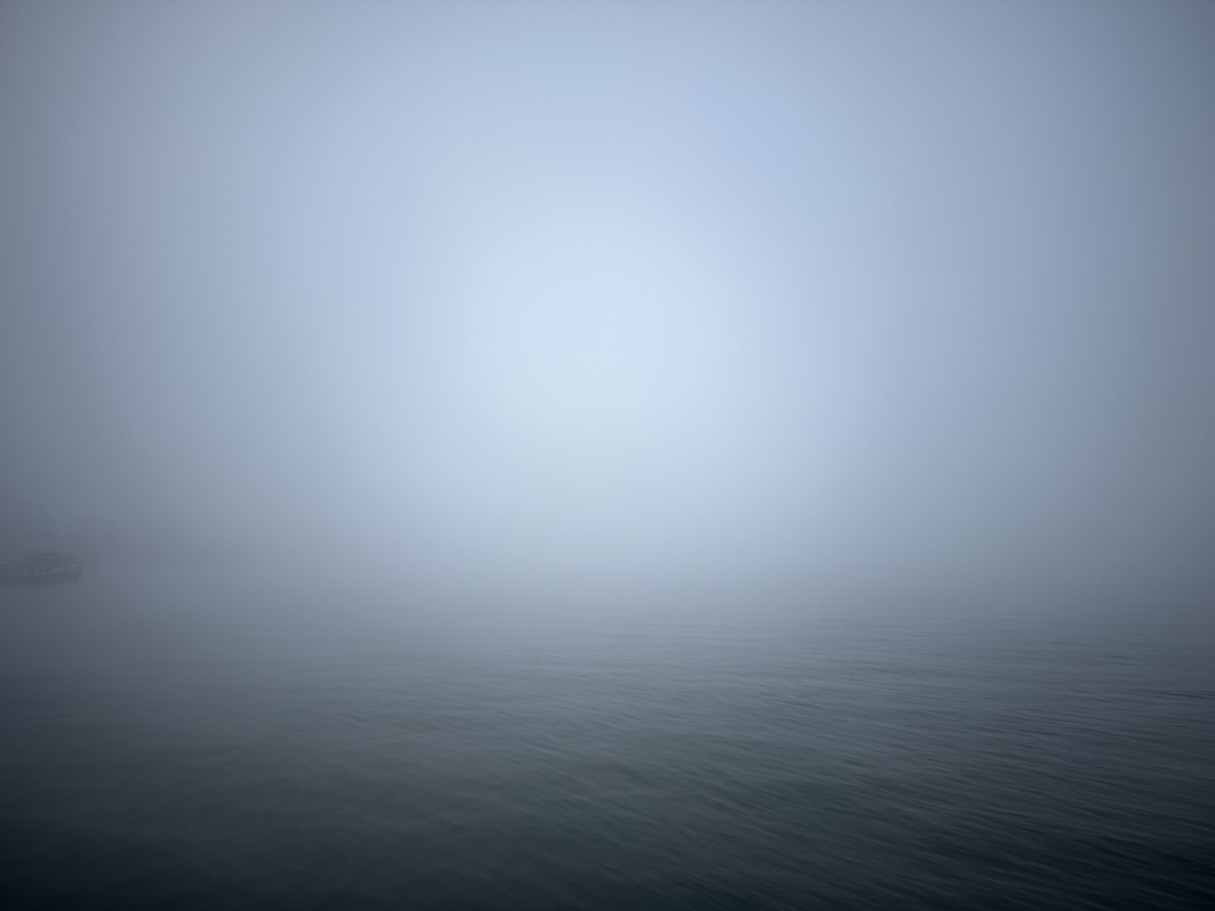 Er is weinig te zien hier bij de pont Maassluis - Rozenburg deze ochtend:
