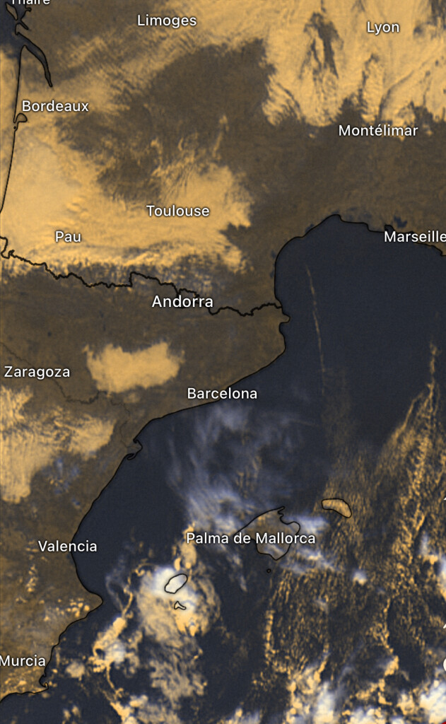 Het feit dat de convergentiezone zo stationair is, wil dus zeggen dat de Tramontane en de Mistral zowat met dezelfde windkracht blaast? Anders zou die toch wat opschuiven. Momenteel is de zone aan het oplossen.