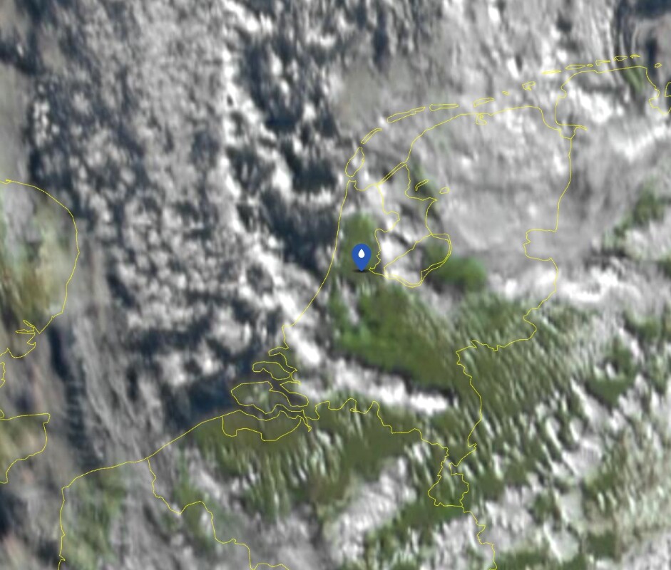 Dat is te danken aan de noordwestelijke stroming waar we mee te maken hebben; er is een mooie trein aan buien te zien op het satellietbeeld die de Benelux vanuit het noordwesten nadert. Tussendoor is regelmatig de zon te zien. Genieten.