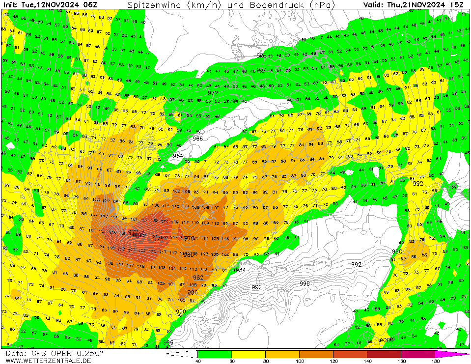 In Noord-Frankrijk en delen van Duitsland gaat de sneeuw gepaard met zeer zware windstoten van 100-140 km/h. Ook Luxemburg pikt hier nog iets van mee. Maar helaas komt dit niet uit.
