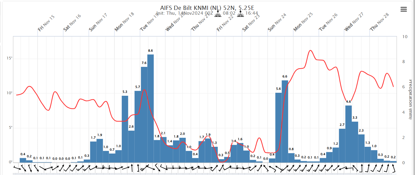 AIFS 00Z-oper. Significante weersomslagen 18>19 en 23>24 november
