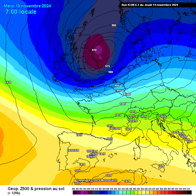 Tot storm zal het vermoedelijk niet komen in deze run, maar sneeuw zal ook uitblijven vanwege de nog nét te noordelijke koers. Dit is dus eigenlijk het 'saaiste' scenario. Geen sneeuw en geen storm. Echter vermoed ik dat na passering van het lagedrukgebiedje het evengoed wel tot winterse buien zal komen, want de koudere lucht komt er dan echt in, vooral op hoogte.