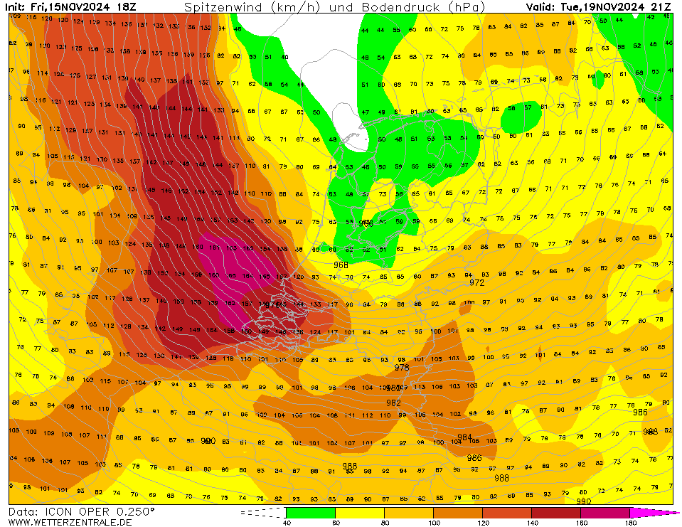 ICON (18z) komt opnieuw met (zeer) zware storm voor dinsdag