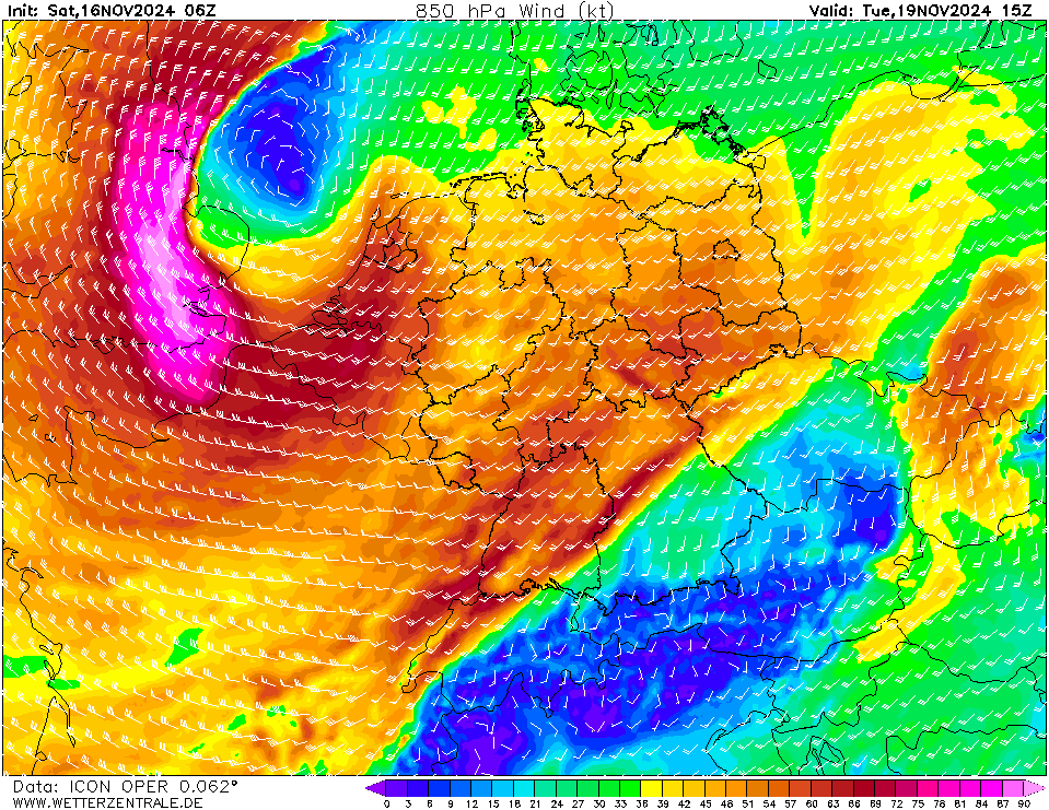De 06Z was erg pittig voor het binnenland van Engeland. Boven de 06Z, onder de 12Z, beide op moment van maximale sterkte.