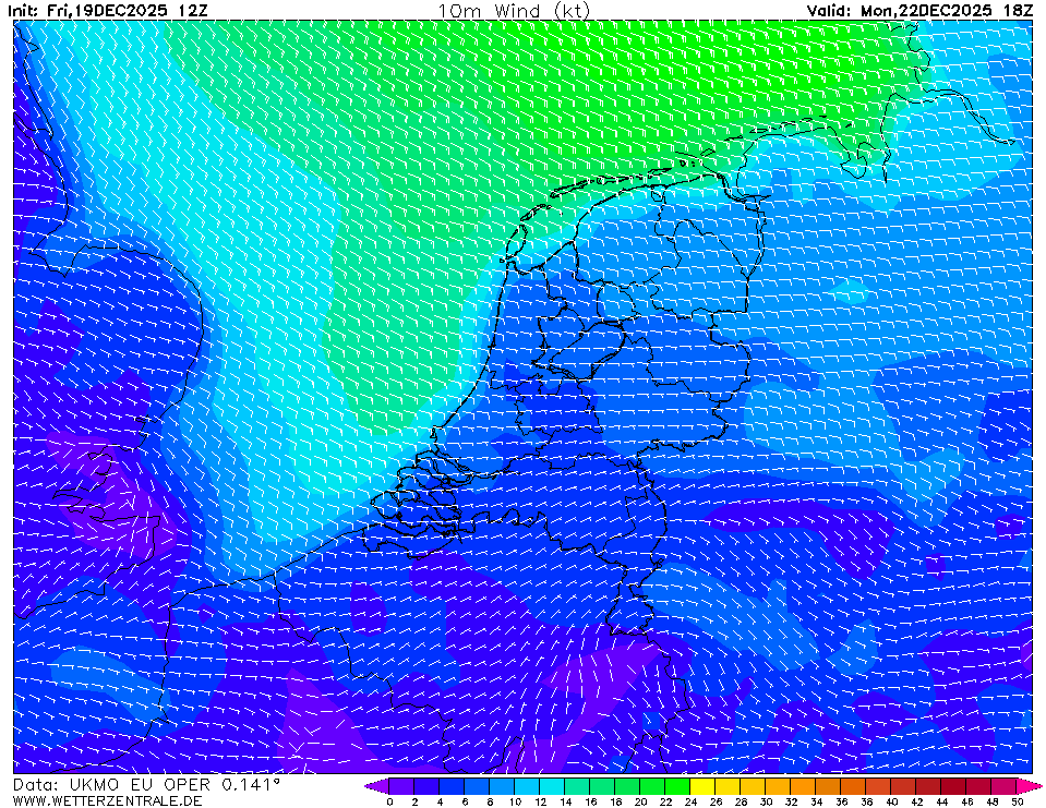 Omvang van het windveld is wel kleiner t.o.v. de 06Z