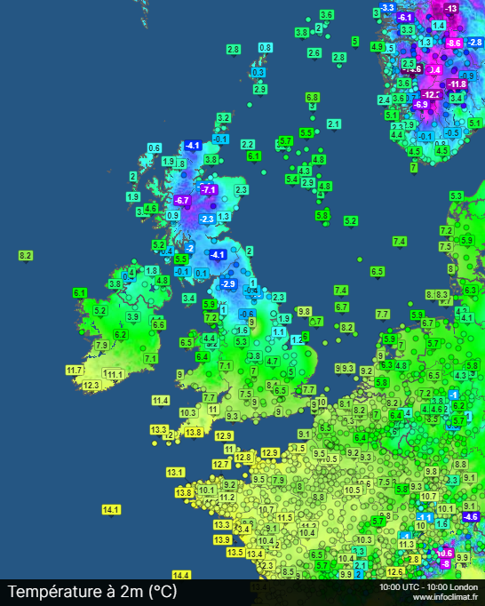BBC weather geeft voor de oostkust van het UK, zeg maar vanaf York tot