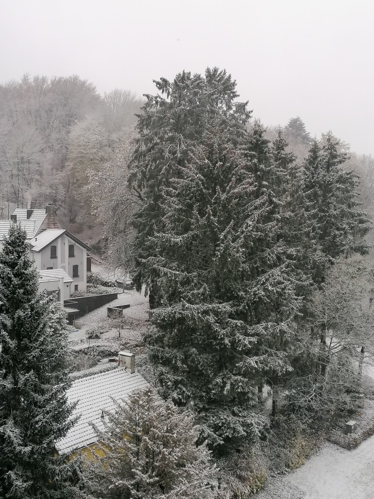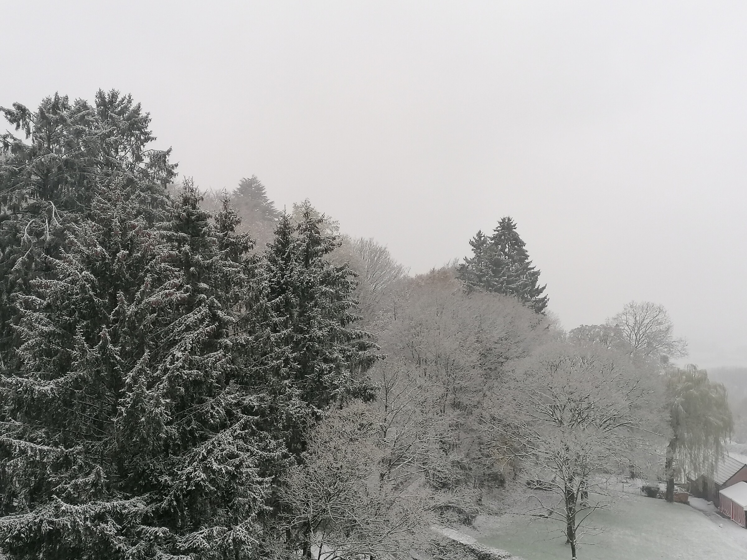 De eerste sneeuw van het seizoen. Na een wat aarzelende start nu toch aardige hoeveelheden.