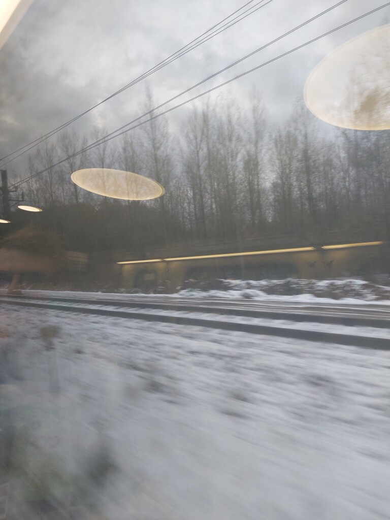 Vanochtend rond 7 uur vanuit Wageningen vertrokken. Onderweg al wel wat sneeuw(resten) gezien, met name tussen Den Bosch en Eindhoven was het soms echt nog goed wit. Vanwege een kapotte bovenleiding tussen Roermond en Sittard nu wel een wat omslachtige route maken (Utrecht - Roermond - Vlodrop - Effeld - Heinsberg - Aken, in plaats van Utrecht - Heerlen - Aken), maar dat mag de pret niet drukken.
