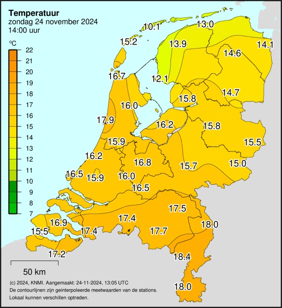 Sowieso lijkt dit mij de meest late datum met >18°C