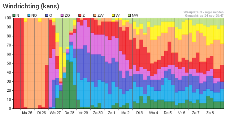 Kansen op aflandige wind stijgt flink vanaf 28 november