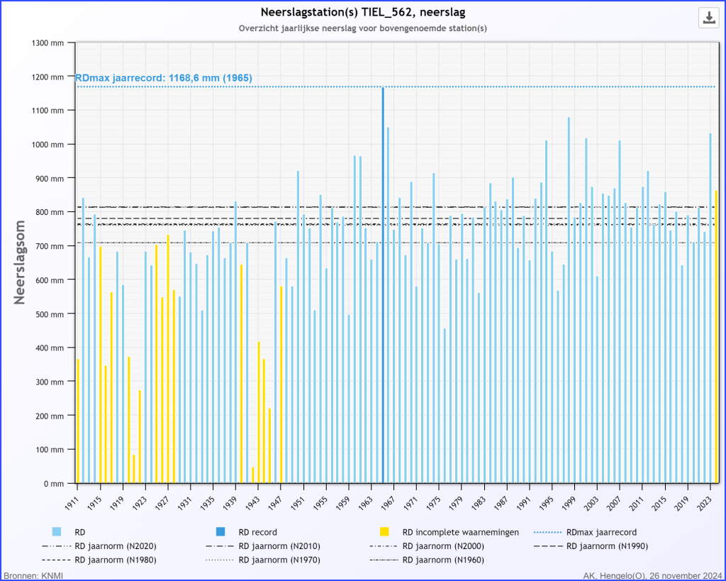 hier nog maar 982mm dit jaar, terwijl 2023 recordnat was met 1251mm