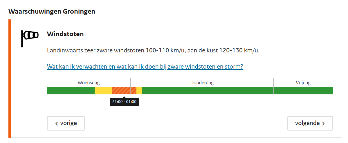 Het enige wat ik mis in de tijdslijn van wanneer het hoogtepunt is. 'Vanavond' is redelijk algemeen, terwijl het windveld bijvoorbeeld in Groningen pas na de avondspits op volle sterkte lijkt te zijn.