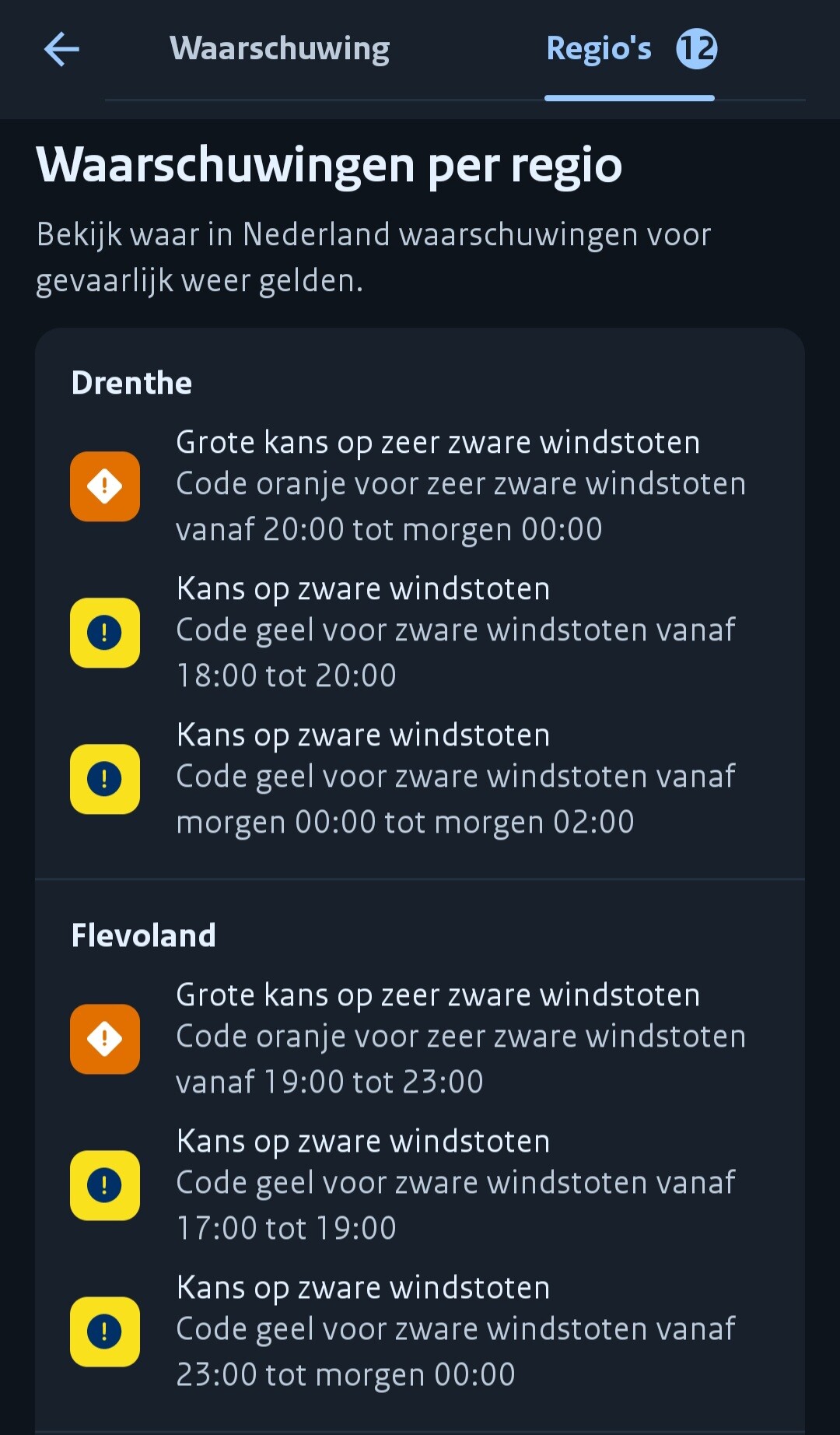 Staat vermeld bij de waarschuwingen zelf, in de app, of op de site.