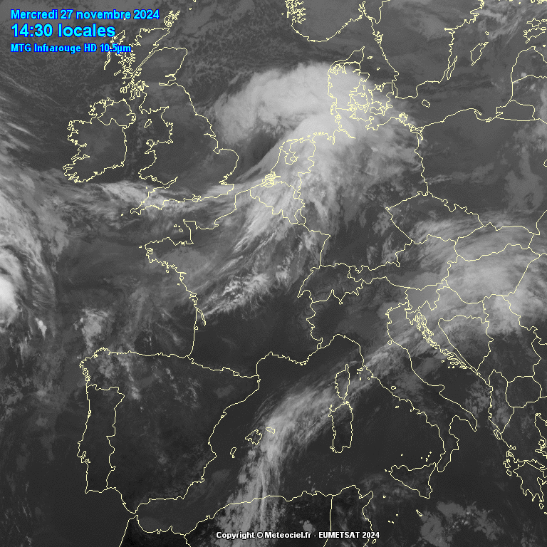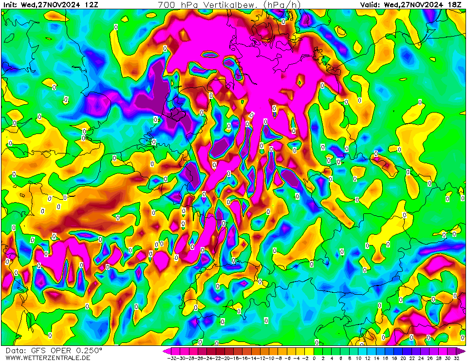 Ben geen stingjet expert, maar op het infraroodbeeld zie je wel dat de wolken verdampen aan het uiteinde van de gekrulde wolkenband. Ook aan de westzijde van de wolkenband bij de binnenstromende polaire lucht zijn er dalende bewegingen waarneembaar. Dat lijkt me overigens niet ongebruikelijk, aangezien de polaire lucht richting de warme kant stroomt en dat zorgt doorgaans voor dalende luchtbewegingen. Verder staat er op zijn best 70 knopen op 925/850 hPa, dus ook met een stingjet zal het niet meer dan 130 km/h worden.
