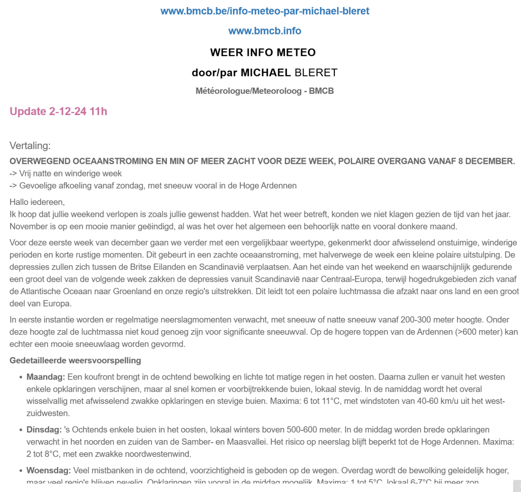 Re: WEER INFO door MICHAEL BLERET Meteoroloog - BMCB